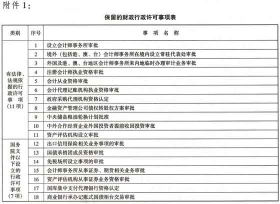 根据《国务院对确需保留的行政审批项目设定行政许可的决定》(国务院令第412号)、《国务院关于第三批取消和调整行政审批项目的决定》(国发〔2004〕16号)、国务院行政审批制度改革工作领导小组办公室《保留的行政审批项目补充确认书》和国务院法制办公室《行政许可法有关问题解答》,保留的财政行政审批项目67项,其中,财政行政许可事项共18项,非行政许可财政行政审批项目49项,现予公布。