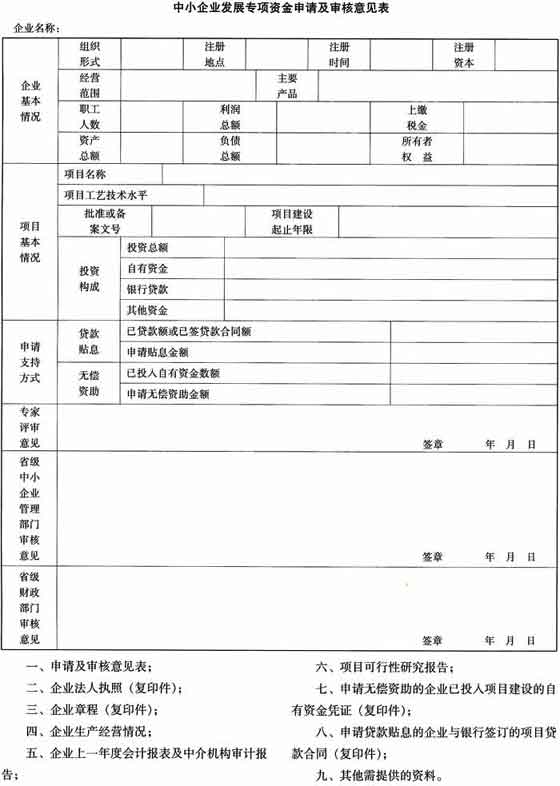 附:中小企业发展专项资金申请书