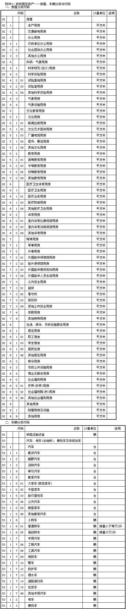 3.政府固定资产——房屋、车辆分类与代码