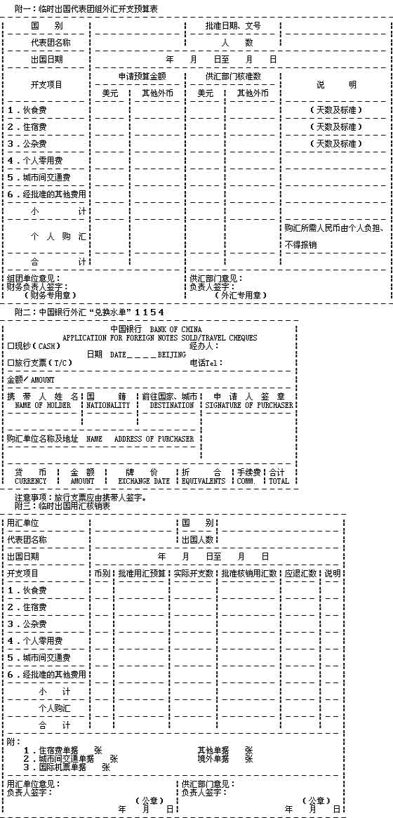 第二十条 供汇部门开出的“用汇申请书”一式四联,全部交给出国团组,出国团组据此到中国银行办理购汇手续。