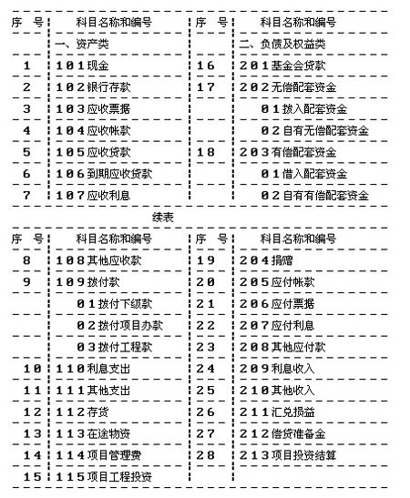 由于基金会贷款项目的具体情况比较复杂,本办法只制定和规范会计总帐科目和可以统一明确的明细科目,其他的明细科目可由省级财政部门根据总帐科目规定的内容和要求以及各自项目实施的具体内容制定。