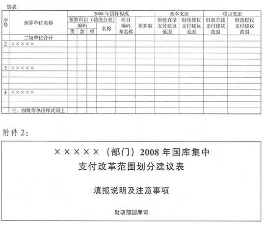 2.×××××(部门)2008年国库集中支付改革范围划分建议表填报说明及注意事项
