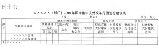 附件:1.×××××(部门)2008年国库集中支付改革范围划分建议表