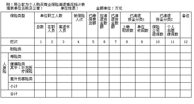 二、清理工作安排及要求。各单位要高度重视清退工作,严格执行规定的各项政策和要求。由各单位主要领导负责,组成人事、纪检监察、财务等部门参加的清退小组,人事部门负责对单位(包括工会、单位内各部门)购买的全部商业保险进行界定,财务部门对人事部门认定为属于清退范围的保险进行清退及登记,纪检监察部门对清退结果进行核实后,由财务部门逐级上报《用公款为个人购买商业保险清退情况统计表》(附件2)。