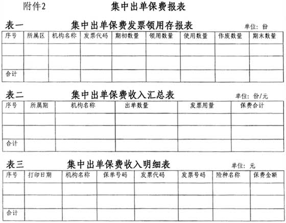 (二)各地级市太平人寿保险公司中心支公司应按月向主管税务机关报送“集中出单保费收入汇总表”(见附件2表二)。是否需要以电子方式报送“集中出单保费收入明细表”(见附件2表三),由各省、自治区、直辖市和计划单列市地方税务局根据实际情况确定。