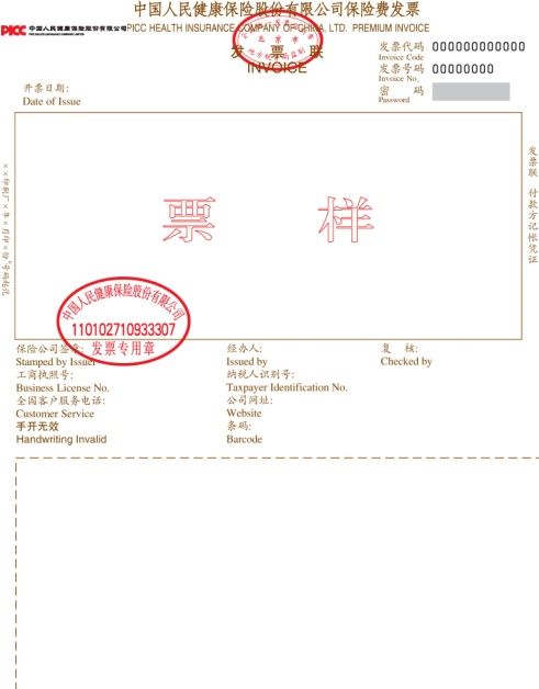 附件:中国人民健康保险股份有限公司保险费发票票样