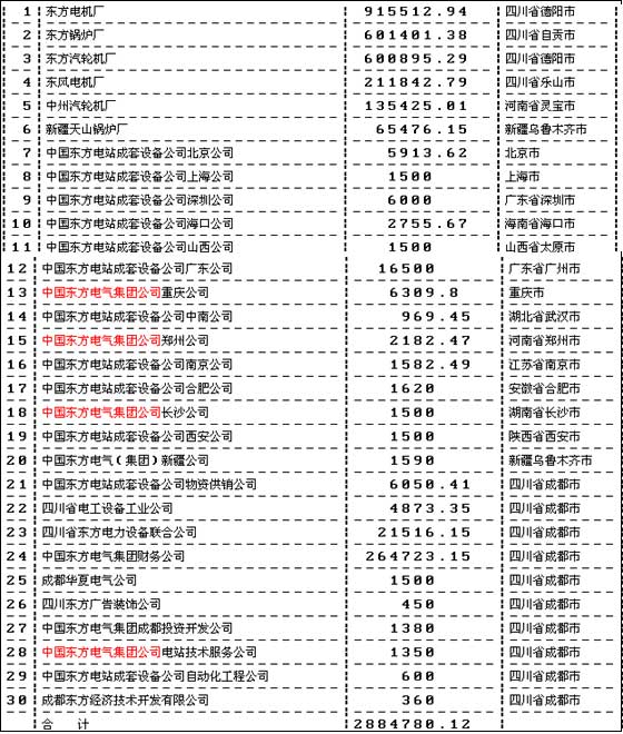 附件:中国东方电气集团公司所属企业1997年度总机构管理费扣除标准