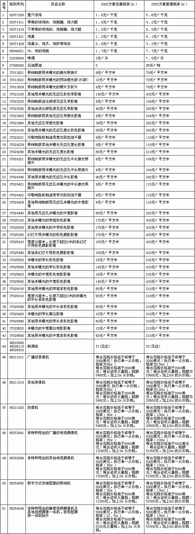 四、2002年进口税则暂定最惠国税目、税率表 (略)