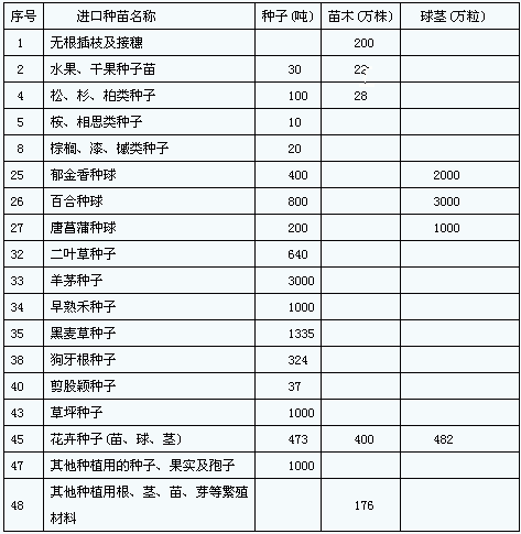 现下达国家林业局2004年度进口种子(苗)和种用野生动植物免税进口计划(见附件1、2),请据此办理审批手续。