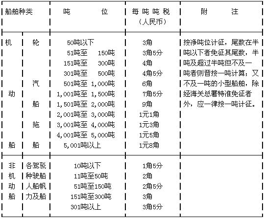 第一条 在中华人民共和国港口行驶的外国籍船舶和外商租用的中国籍船舶,以及中外合营企业使用的中外国籍船舶(包括专在港内行驶的上项船舶),均按本办法由海关征收船舶吨税(以下简称吨税)。