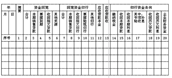 (三)资金回笼:分别按本期销售货款回笼、到期票据、收回历年拖欠货款和其他来源(主要指专项补贴和盘活挤占挪用贷款等)进行登记。