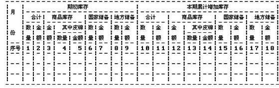 (一)期初库存:指上期结转数,分别按商品库存、国家储备和地方储备登记棉花数量和金额。棉花副产品只登记金额,不登记数量。