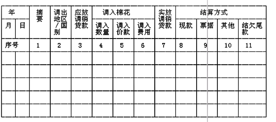 (一)年月日:记录发放调入棉花贷款时间,根据调拨单(或进口棉花提货单)记录调入棉花时间。