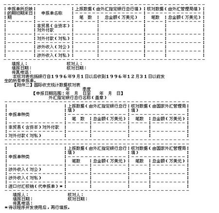 1.国际收支统计监测系统数据核对制度采用季度核对方法,对各外汇指定银行总行上报数据与国家外汇管理总局接收数据进行核对。