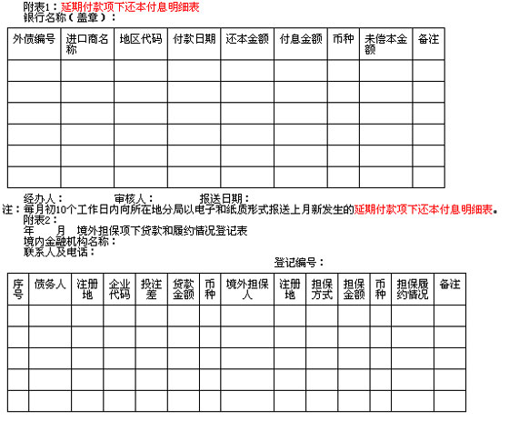 境内机构自2005年12月1日起新签约的进口合同,其未付汇金额在等值20万美元(含)以上,且约定或实际付款期限在180天(含)以上的延期付款,进口企业应在进口报关后15个工作日内到所在地国家外汇管理局分支局(以下简称“外汇局”)办理延期付款外债登记,领取《外债签约情况表》。对符合以上条件的延期付款,银行应凭《外债签约情况表》和相关进口项下付汇单据办理进口项下支付,其对外支付金额不得超过《外债签约情况表》登记的本金和利息。