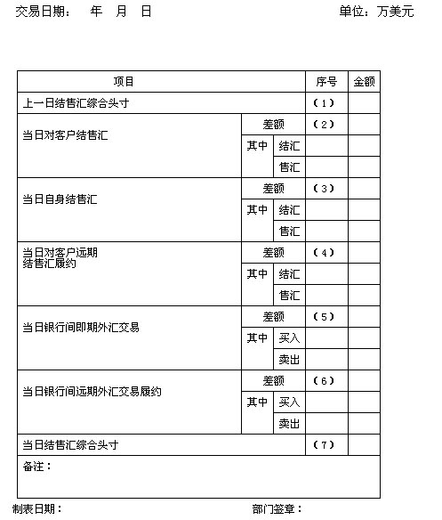 3.《结售汇综合头寸日报表》各种外币均折合万美元统计,不保留小数点。
