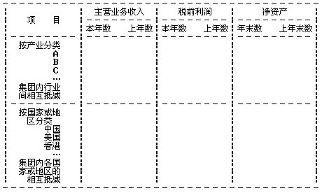 公司的经营如果涉及到不同行业的业务,在不同地区设有子公司,则还应将财务报表(或合并财务报表)按不同行业、不同地区提供有关数据。格式如下所示: