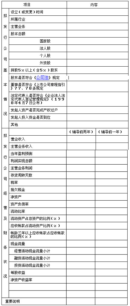 4、拟发行公司基本情况资料表(附表一);
