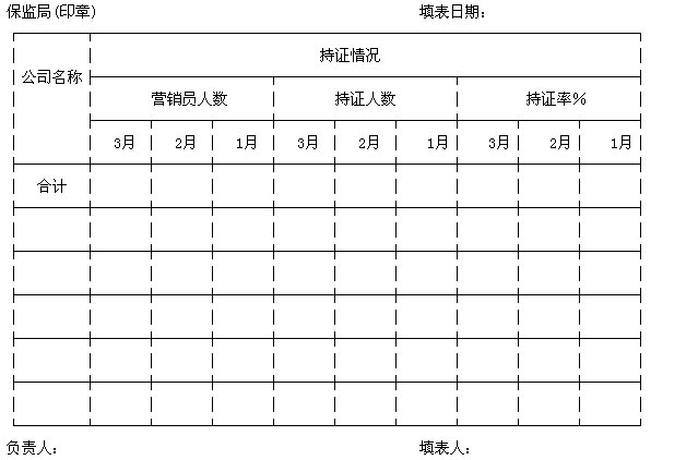 (六)今年第二季度开始,各保险公司应按规定格式(见附件1)在每个季度结束后日内将本公司的保险营销员持证情况报告中国保监会。各保险公司应对报送的保险营销员持证情况报表的真实性、准确性和及时性负责。