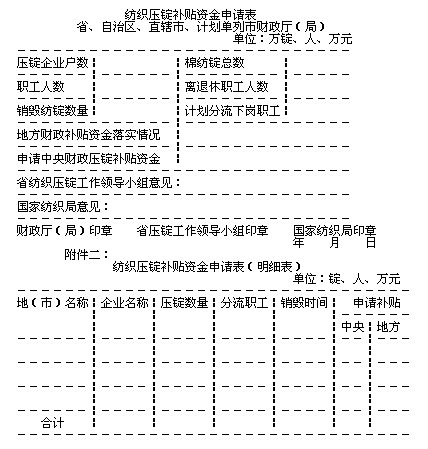 附件:一、纺织压锭补贴资金申请表