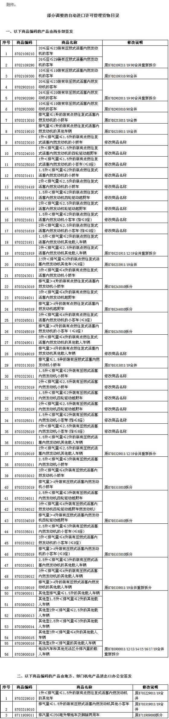 从4月1日起,各发证机构和进口企业按照调整后的商品编码发放和申领《自动进口许可证》。