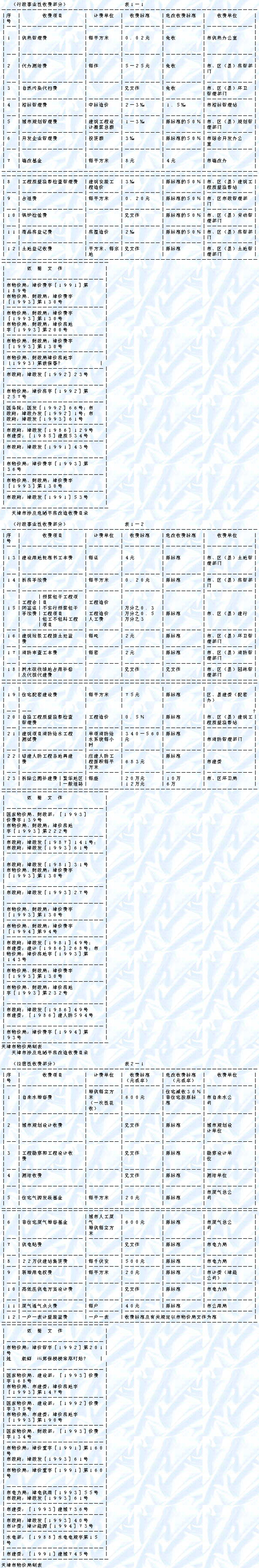 一、我市涉及危改的收费项目及标准以《天津市涉及危陋平房改造收费目录》(详见附件)为准。除规定的35项涉及危改的收费外,其他擅自确定的收费一律无效,危改实施单位有权拒付。今后如有确需增加对危改收费的项目,必须严格按照国家规定的管理权限及审批程序,由业务