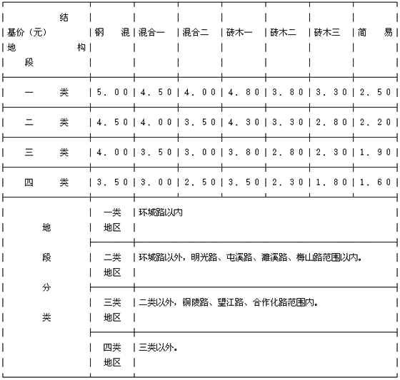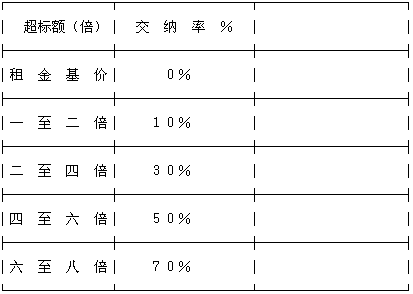 注:每平方米租金为五元,如出租时每平方米为20元,超过15 元,超出基价三倍,第一档超10元,计征1元,第二档超5元,计征1.5元,共征2.5元。
