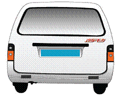 四、汽车经销商在将汽车下乡产品销售给农民时,须在尾部外表面显著位置(在保险杠之上的后部车身表面)上标注汽车下乡标识,示例如下: