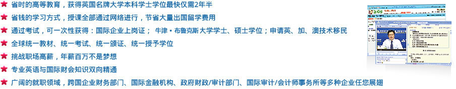 目前在众多大型国际企业中担任高层职位和CFO职位的ACCA会员不计其数。ACCA在全球的声誉和影响力是基于ACCA对财会培训的不断创新。ACCA一直致力于培养全世界最好的会计和会计师,不论你的年龄、性别、学历、种族,只要你立志成为世界公认的会计和国际公认的会计师,均可申请成为ACCA学员,在通过一系列的专业考试,并取得一定的财务工作经验后,就可被授予ACCA(英国特许公认会计师)资格,此资格在国际财务金融界备受推崇。