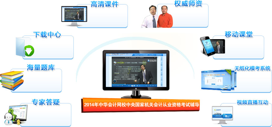 权威的师资阵容:会计辅导权威专家执教,丰富的教学经验,对考试重点、难点把握准确! 考试、练习中心:课后同步练习,海量题库附有答案及解题思路与分析。考前高含金量模拟题,让学员体验实战演练。
