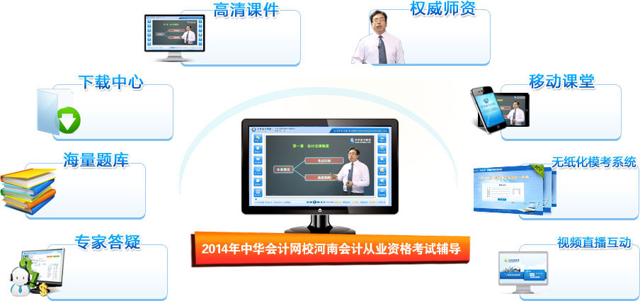 权威的师资阵容:会计辅导权威专家执教,丰富的教学经验,对考试重点、难点把握准确! 考试、练习中心:课后同步练习,海量题库附有答案及解题思路与分析。考前高含金量模拟题,让学员体验实战演练。