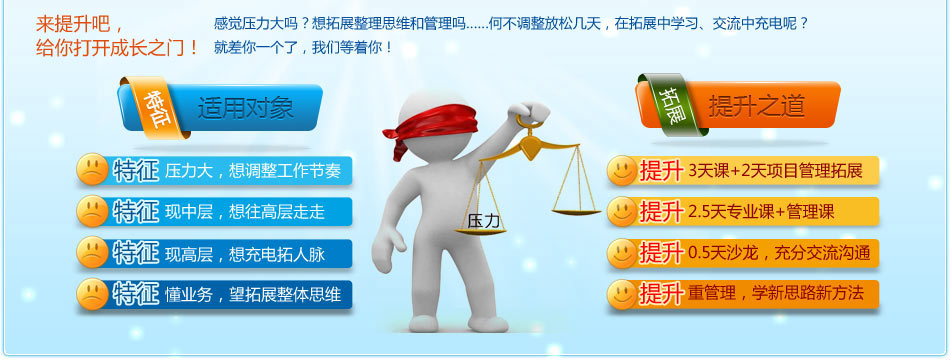 网上拓展班:课时4~6小时,高级研修班结课后1个月左右开通;帮助您课后消化各主题重点难点问题和管理精髓,并适当拓展业务思路。