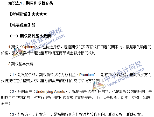为了帮助参加2016年期货从业资格考试的学员巩固知识,提高备考效果,中华会计网校精心为大家整理了期货从业资格考试《期货基础知识》第六章期权中第一节期权及其特点和基本类型相关高频考点供大家学习,希望对广大考生有所帮助,祝大家学习愉快,梦想成真!