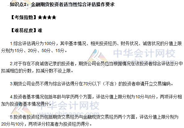 2016年第五次期货从业考试时间为11月19日。为了帮助参加2016年期货从业资格考试的学员巩固知识,提高备考效果,正保会计网校精心为大家整理了期货从业资格考试《期货法律法规》法条二十二“金融期货投资者适当性制度操作指引”相关高频考点供大家学习,希望对广大考生有所帮助,祝大家学习愉快,梦想成真!
