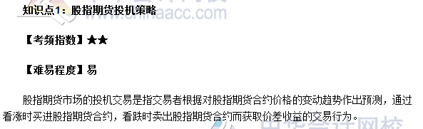 2016年第五次期货从业考试报名入口已开通(查看入口>>)!为了帮助参加2016年期货从业资格考试的学员巩固知识,提高备考效果,正保会计网校精心为大家整理了期货从业资格考试《期货基础知识》第九章股指期货及其他权益类衍生品中第三节 股指期货投机与套利交易相关高频考点供大家学习,希望对广大考生有所帮助,祝大家学习愉快,梦想成真!