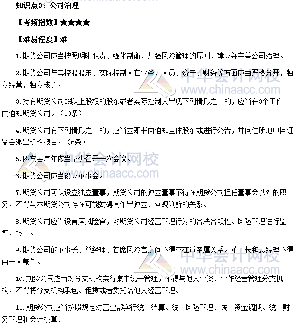 “公司治理”属于《期货法律法规》法条四期货公司监督管理办法的内容,对于此知识点你掌握的如何?如果没有熟练掌握,那就仔细阅读正保会计网校教学专家为你准备的“公司治理”高频考点。