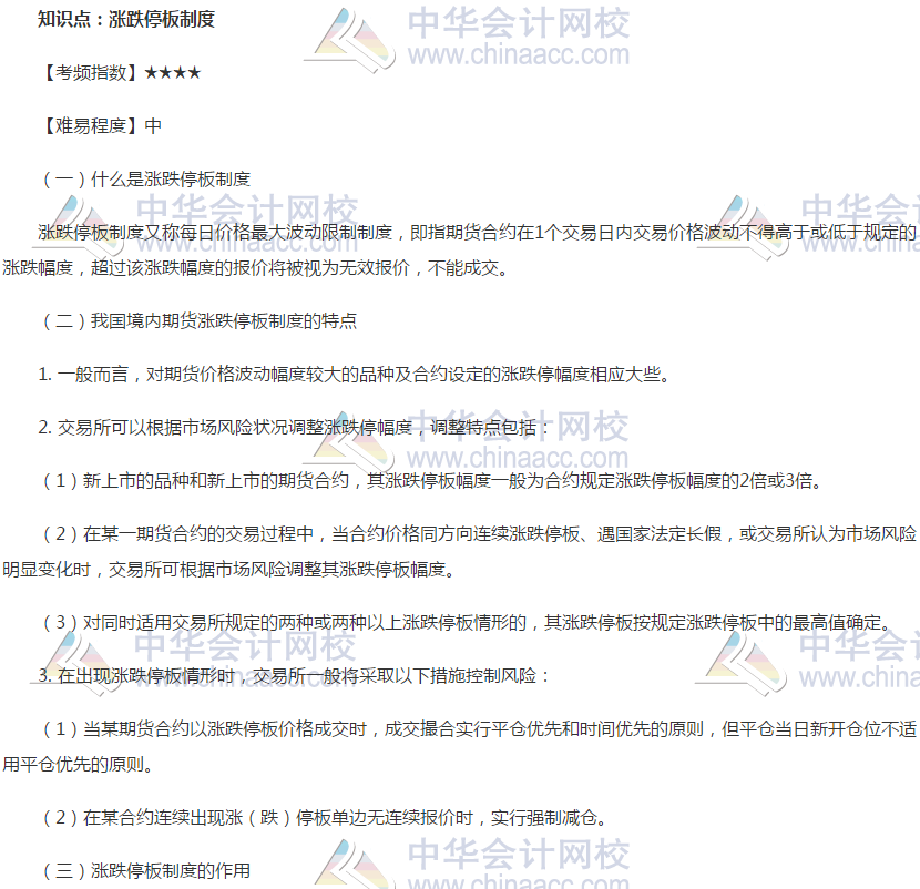 期货从业《期货基础知识》高频考点:涨跌停板制度