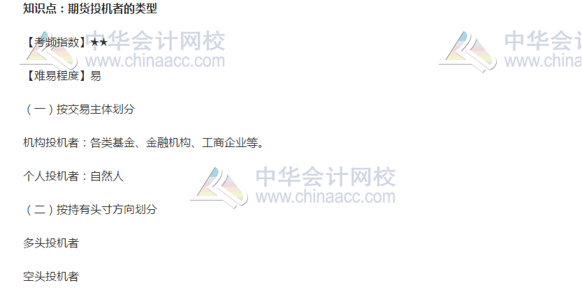 期货从业《期货基础知识》高频考点:期货投机者的类型