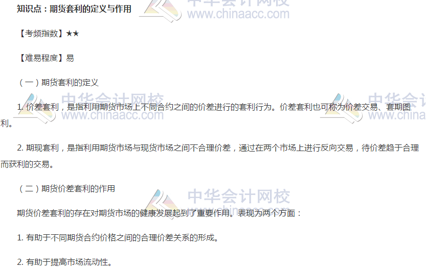 期货从业《期货基础知识》高频考点:期货套利的定义与作用