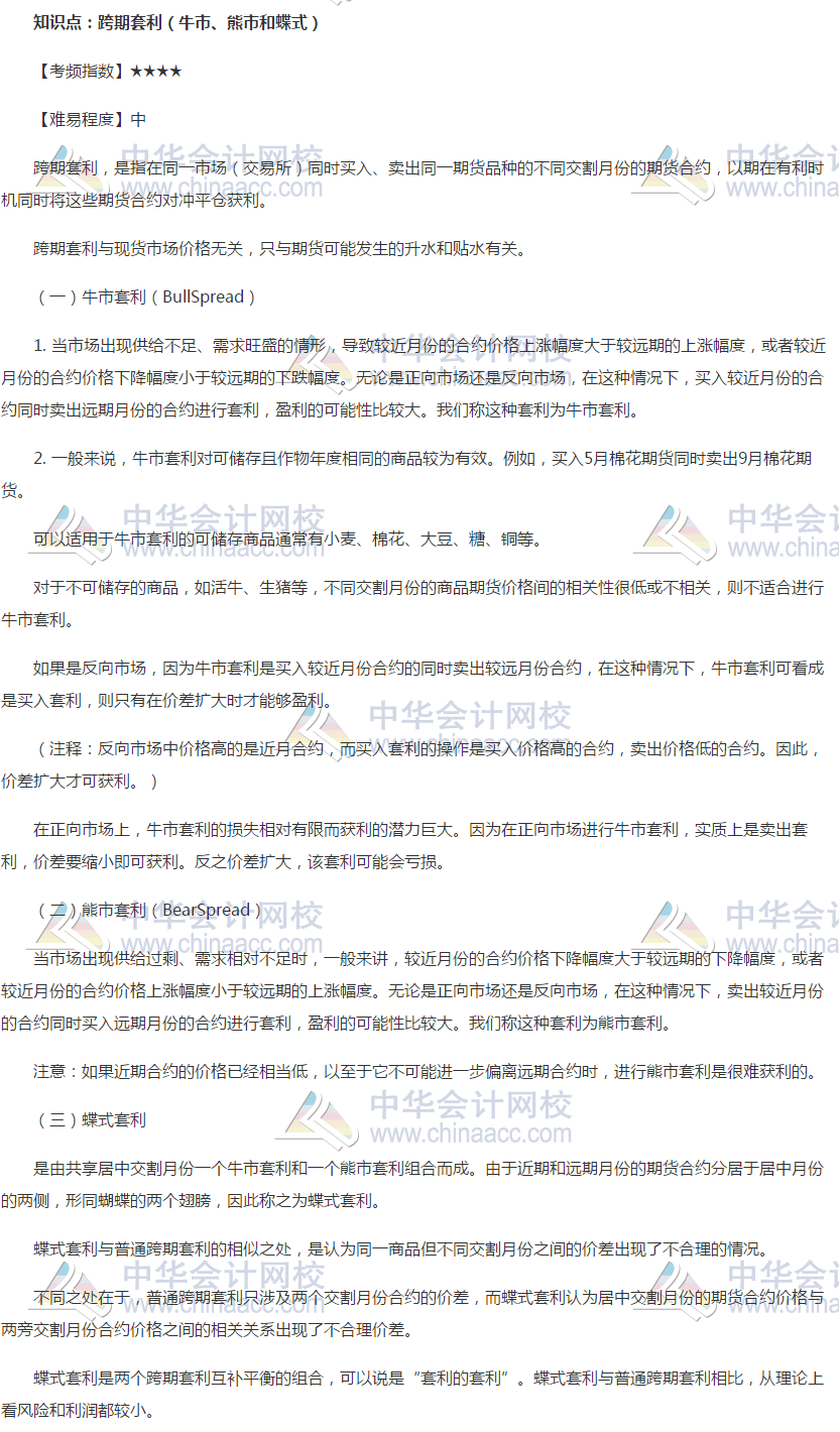期货从业《期货基础知识》高频考点:跨期套利