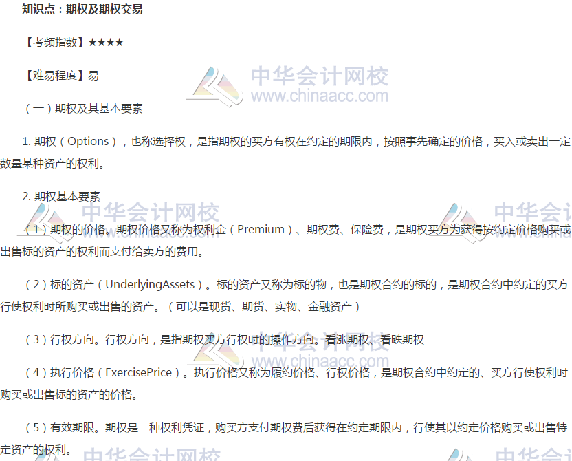期货从业《期货基础知识》高频考点:期权及期权交易