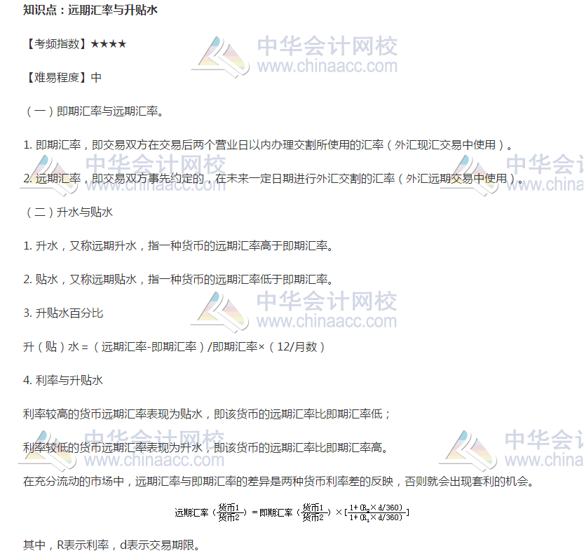 期货从业《期货基础知识》高频考点:远期汇率与升贴水