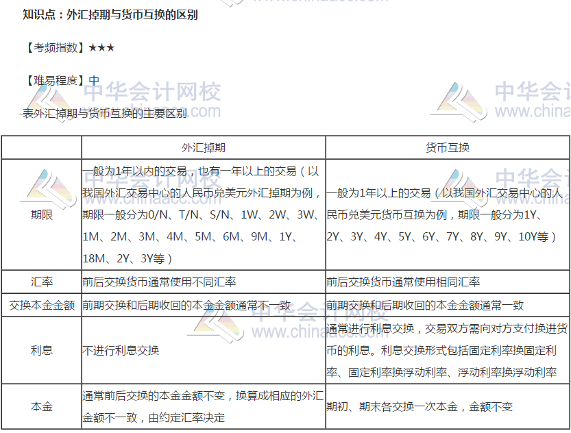 期货从业《期货基础知识》高频考点:外汇掉期与货币互换的区别