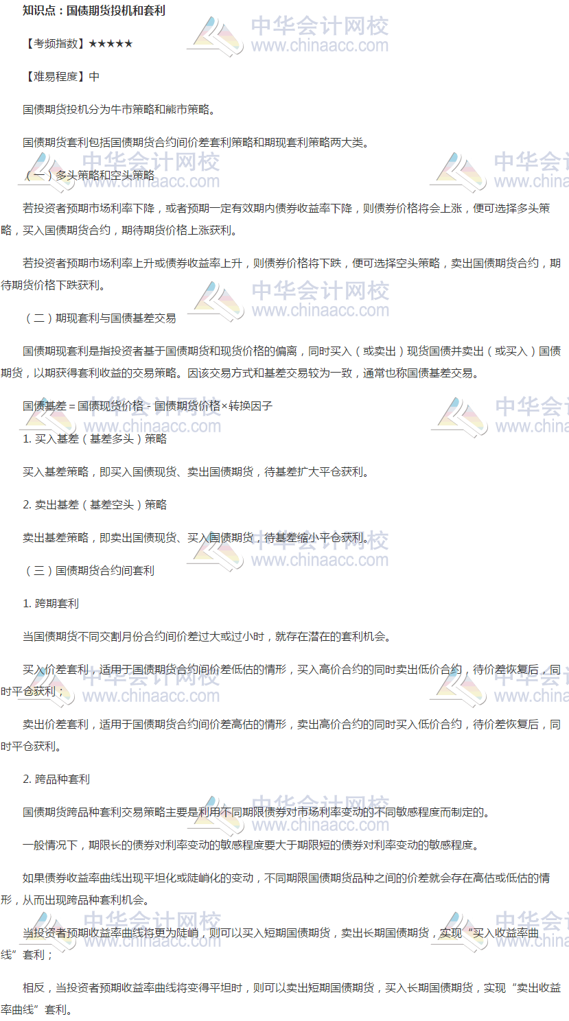 期货从业《期货基础知识》高频考点:国债期货投机和套利