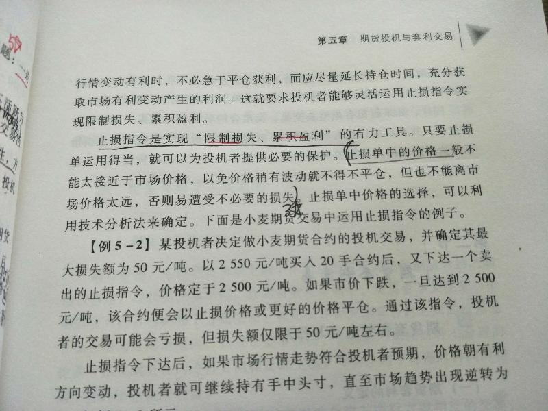 详细问题描述: 画的三星处 前括号到后括号的地方怎么理解? 答疑老师回复: 亲爱的学员,您好!很高兴能为您提供帮助,您的问题答复如下: 这句话的意思是投资者设定的止损价格要适当,不要太高,也不要太低。如果离市场价格太近的话,比如教材上的这个例子,市场价格为2550元/吨,如果投资者设定的止损价格为2540元/吨,当价格稍有变动下降到2540元/吨时,投资者就得平仓,这样就错失了价格上涨的机会。如果止损价格离市场价格太远的话,假设投资者设定的止损价格为2400元/吨,如果期货价格持续下降,投资者承受的损失就越来越大,当价格下降到2500元/吨时,投资者承担50元/吨的损失,但由于未到止损价格,期货合约不会被平仓,当价格再下降时,投资者的损失更大。 所以,止损单中的价格一定要适中,既要限制损失,又不能错过可能的盈利机会。 如果您还有疑问,欢迎您继续提问! ----------------------------------------- 继续提问: 老师 止损指令怎么理解 就是单纯的为止损指令的理解举一个例子 谢谢 答疑老师回复: 爱的学员,您好!很高兴能为您提供帮助,您的问题答复如下: 止损指令指当市场价格达到客户预先设定的触发价格时,即变为市价指令予以执行的一种指令 . 可以简单地理解为停止损失的价格。如果投资者买入期货合约,他肯定希望价格走势越高越好,但市场价格并不可能一直上升,当价格下降时,他需要设定一个发生损失时可以接受的价格,这个价格要比他的买入价格低,如果真发生价格下降走势,一旦价格下降到这个价格时,系统会为其平仓,使投资者的损失不会再扩大。 如果投资者是卖出期货合约,也是这样,您可以先自己分析一下,把您的理解写出来,网校老师与您一起探讨。 如果您还有疑问,欢迎您继续提问! ----------------------------------------- 继续提问: 最后变为市价指令 是指以市场价格平仓吗 比如买入执行价格为50 结果数月后市场价格为30 预先设定的价格是40 当市价降低至40时 系统会以40平仓么 答疑老师回复: 亲爱的学员,您好!很高兴能为您提供帮助,您的问题答复如下: 市价指令是指不限定价格的、按照当时市场上可执行的最优报价成交的指令。 如果预先设定的价格是40,那么到40时,就会以当时市场上可执行的最优报价成交。 祝您学习愉快! |