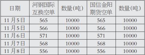 国信金阳:在大商所商品互换交易平台与河钢国际签订相关协议;淡水河谷点价时,河钢国际通过互换做空,国信金阳通过做空大连铁矿石对冲与河钢国际的互换风险;河钢国际销售时,互换平仓,国信金阳同步将大连铁矿石合约平仓。