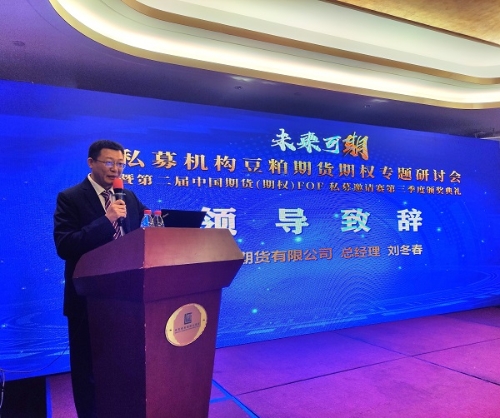 3月27日,由证券时报、期货日报联合指导,华联期货、期报投资共同主办,恒生i私募技术支持的私募机构豆粕期货期权专题研讨会暨“未来可期”第二届中国期货(期权)FOF私募邀请赛第三季度颁奖典礼在东莞举办成功。华联期货总经理刘冬春为会议致辞。