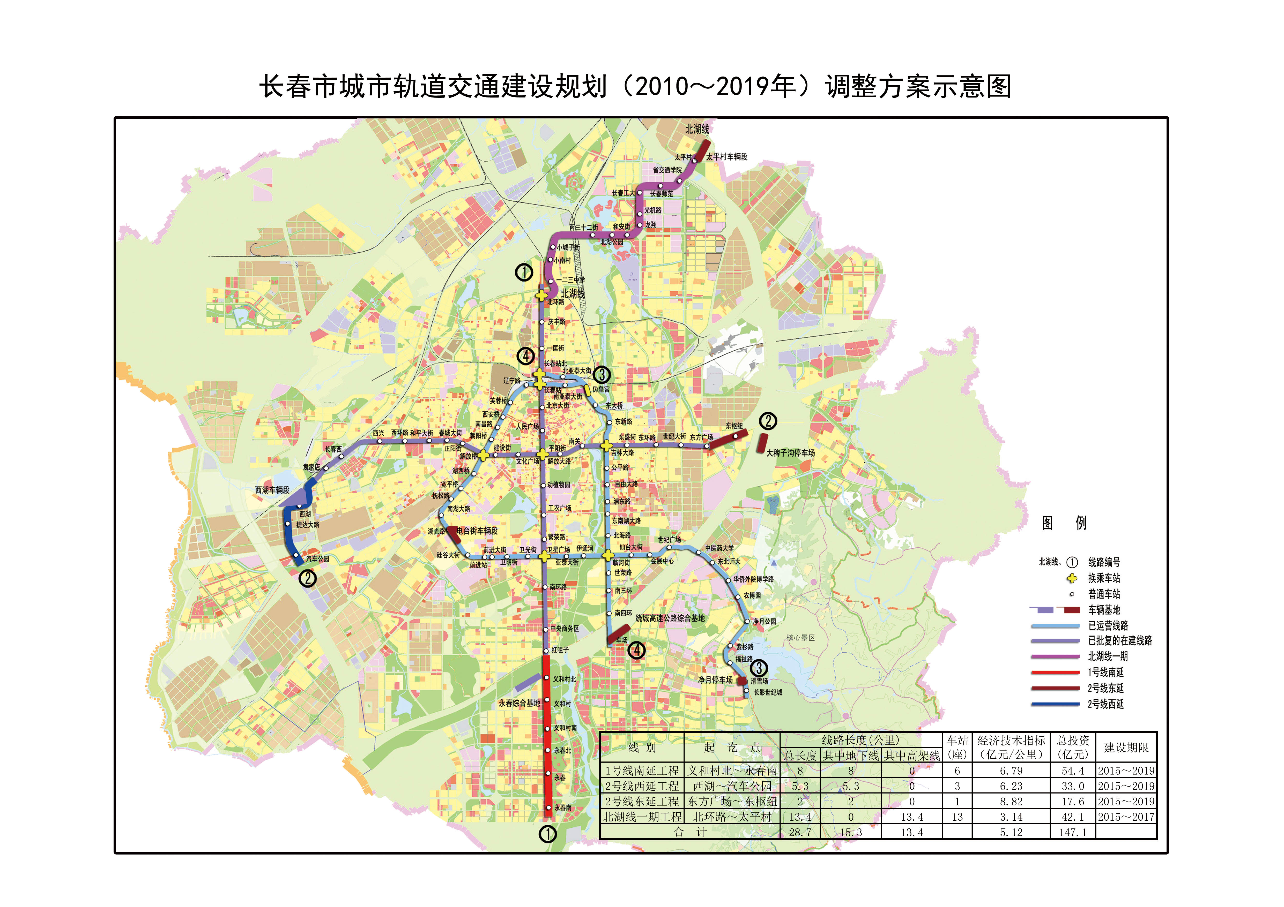 附图:长春市城市轨道交通近期建设规划(2010~2019年)调整方案示意图