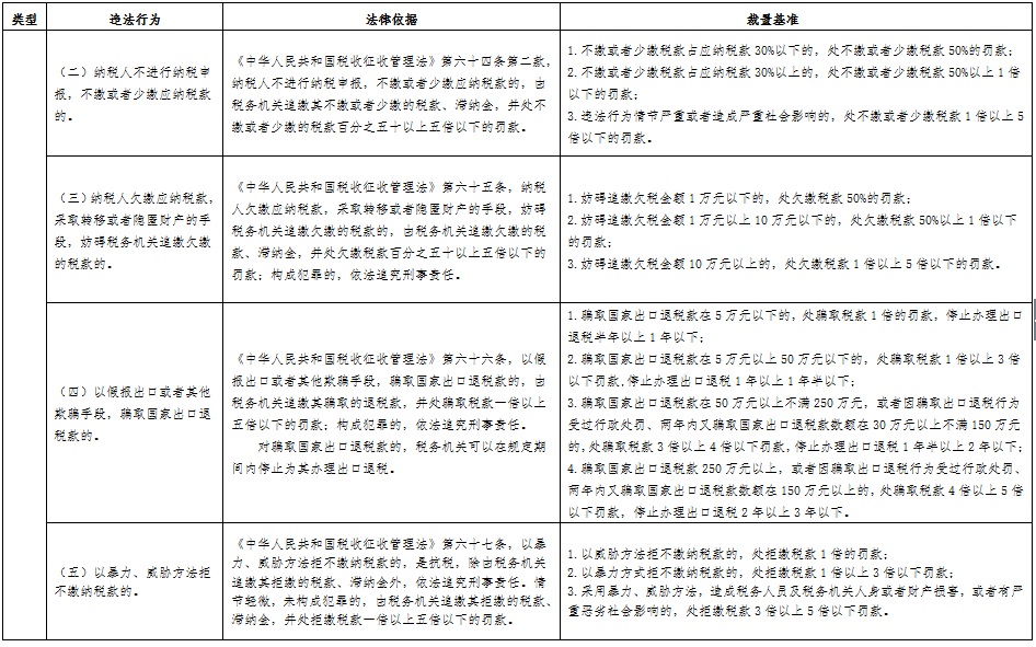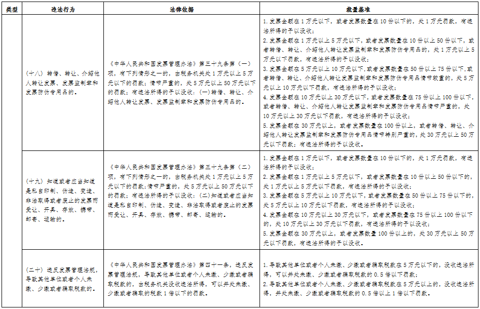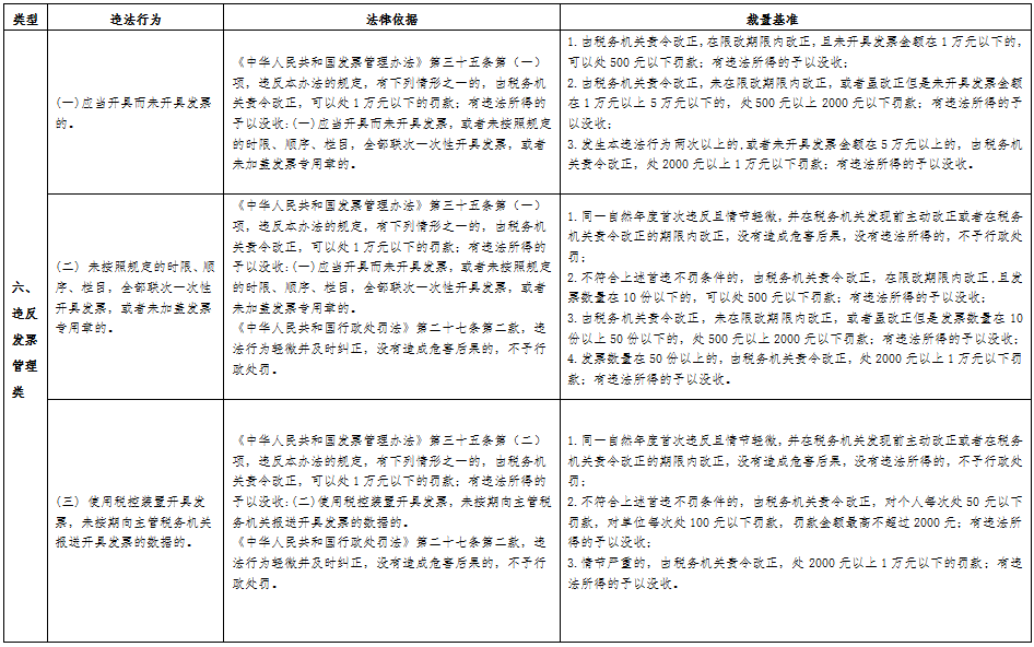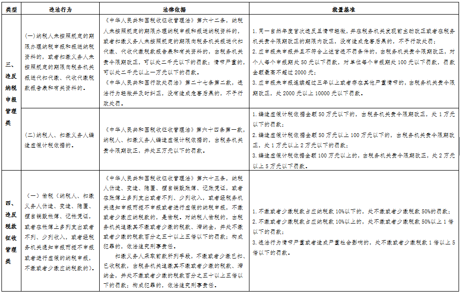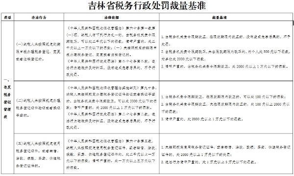 为规范税收执法行为,营造公平公正、规范有序的税收执法环境,保护税务行政相对人的合法权益,按照《税务行政处罚裁量权行使规则》(国家税务总局公告2016年第78号发布)要求,国家税务总局吉林省税务局制定了《吉林省税务行政处罚裁量基准》,现予以发布。