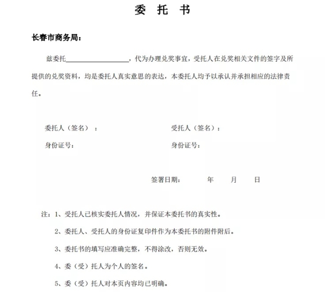 二、办理地点:长春市朝阳区西安大路1788号长春市商务局526室进行中奖登记,奖品领取时间和地点请关注媒体后续发布。